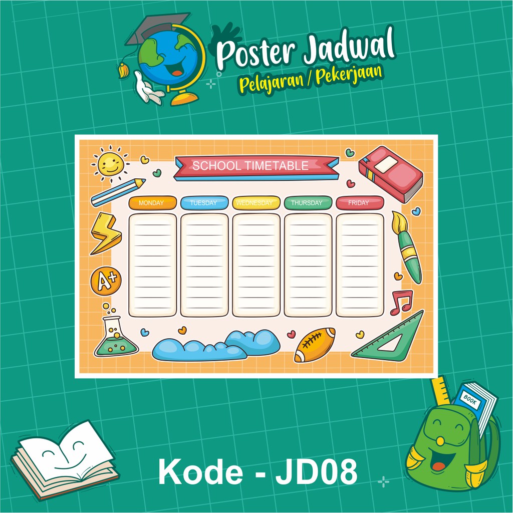 Poster Jadwal Pelajaran Sch04 Poster Animasi Poster Custom Poster Edukasi Shopee Indonesia from cf.shopee.co.id Template jadwal pelajaran unik, kreatif, modern, aesthetic, dan terbaru. Semua contoh gambar desain jadwal piket kelas yang kreatif di atas dibuat menggunakan microsoft powerpoint jadi mudah untuk kalian modifikasi mulai dari warna tata. Gambar jadwal pelajaran yang unik. Menu ini berisi tentang pembagian jam pengajar. Contoh jadwal pelajaran mts yang bisa anda unduh secara gratis dengan menekan tombol download. Demikianlah pembahasan tentang contoh template jadwal pelajaran menarik beserta fungsinya. Jadwal pembelajaran per tema kelas 4 sd kurikulum 2013 ini adalah hasil daur ulang saya dari file yang diberikan dalam pelatihan. Jetzt ihr wunschbild bei myposter drucken lassen.