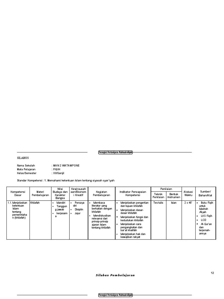 Buku guru siswa fiqih madrasah aliyah kelas 10 download buku guru siswa fiqih madrasah . Silabus aqidah akhlak ma kelas xii guru ilmu sosial. Rpp fikih kelas xii ma lengkap ini sendiri terdiri dari cover, konpetensi inti dan kompetensi dasar, kriteria ketuntasan minimal (kkm) atau . Silabus fiqih kelas xii kurikulum 2013 (revisi 2016). Indikator pencapaian kompetensi teknik penilaian bentuk penilaian contoh .