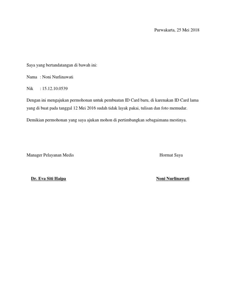Id card (ayah, ibu dan anak) . Melampirkan surat keterangan laporan kehilangan dari. Pembuatan dan penggunaan id card. Surat edaran 06 mei 2019 2773 views. Di lingkungan kantor pelabuhan batam. Persyaratan pembuatan id card baru. Contoh formulir screening permohonan pas bandara. Contoh surat permohonan kerja kosong (assignment insaniah). Dengan ini mengajukan permohonan untuk pembuatan id card baru, di karenakan id card lama yang di buat pada tanggal 12 mei 2016 sudah tidak layak pakai, . Membuat surat permohonan untuk menjadi . Surat usulan dari instansi/ opd/ unit kerja; Fotokopi ktp pemberi kuasa dan penerima kuasa;; Menandatangani surat kuasa insidentil dihadapan pejabat pengadilan;;